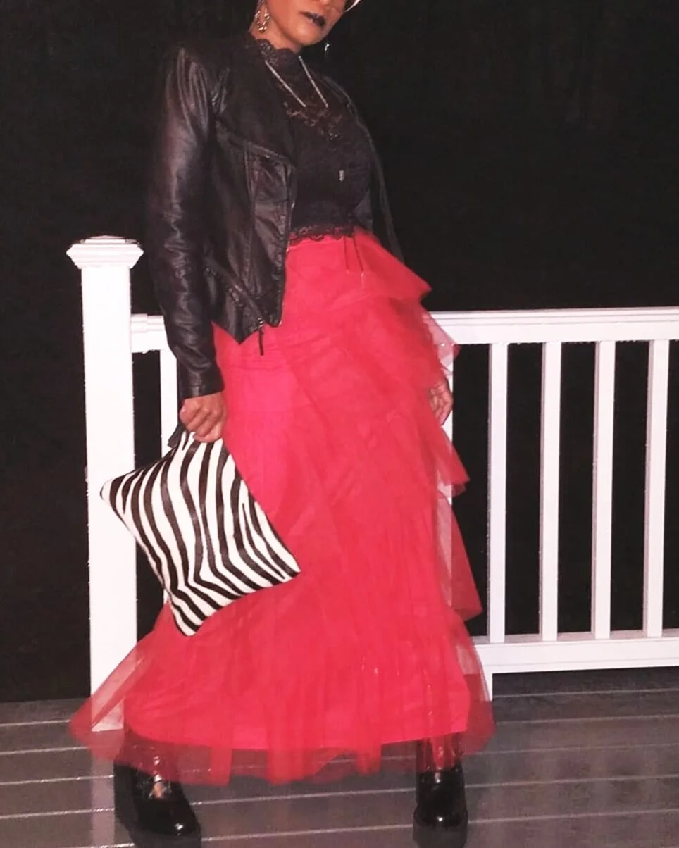 Throw a moto jacket over a tulle skirt. The toughness of the leather provides a nice counterbalance to the softness of the tulle.